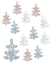 Dekorace vánoční dřevěná - stromeček 12 ks, 3,5cm
