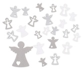 Anděl dřevěný šedý a bílý 2,5 cm 12 ks + 3,5 cm 12 ks