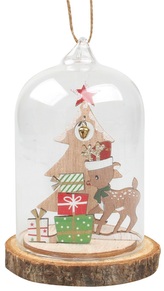 Ptáček dřevěný se šálou a kulichem 13 x 13 cm, na postavení