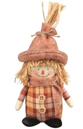 Ptáček dřevěný se šálou a kulichem 13 x 13 cm, na postavení