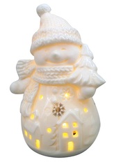 Porcelánový sněhulák s LED 6,5 x 10,5 cm