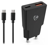 NEDIS síťová nabíječka/ 20 W/ PD 3.0/ rychlé nabíjení/ 1.5 / 2.0 / 2.22 / 3.0 A/ USB-A/ USB-C/ černá/ kabel 1,5m