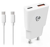 NEDIS síťová nabíječka/ 20 W/ PD 3.0/ rychlé nabíjení/ 1.5 / 2.0 / 2.22 / 3.0 A/ USB-A/ USB-C/ bílá/ kabel 1,5m