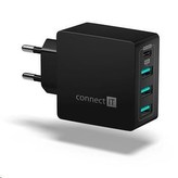 CONNECT IT Fast Charge nabíjecí adaptér 3xUSB-A + 1xUSB-C, 4,8A, černá
