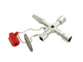 Univerzální klíč na řetízku pro technické skříně, 4 druhy klíčů + bit, GEKO