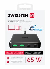 SWISSTEN MINI DESKTOP ADAPTÉR GaN 2x USB-C + 2xUSB 65W POWER DELIVERY ČERNÝ