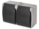 Zásuvka nástěnná dvojitá, šedo-černá, IP44
