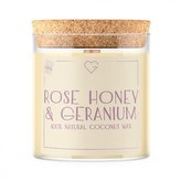 Svíčka s dřevěným praskajícím knotem - Rose Honey & Geranium 280 g