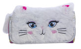 Pukka Roll Up dětský penál na zip, bílý, chlupatý, motiv kočička