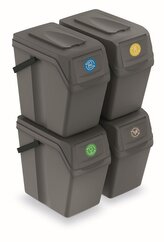 Sada 4 odpadkových košů SORTIBOX II - objem: 4x25 l, barva: šedý kámen