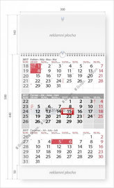 Kalendář nástěnný 2017 - Tříměsíční šedý s laší