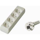 PremiumCord Rozbočovací zásuvka 2× plochá + 1x kulatá s vypínačem 230V, bílá