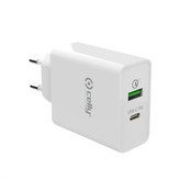 Celly nabíječka do sítě, 1x USB, 1x USB-C, bílá