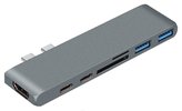 XtendLan Dokovací stanice 7in1 s dvojitým USB-C(3.1), HDMI(F)4K, USB C (F) PD, USB C (F) Thunderbolt, SD čtečka,2xUSB3.0