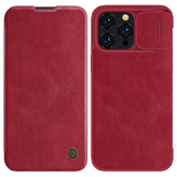 Nillkin Qin Leather Pro Case etui iPhone 14 Pro Max osłona na aparat kabura pokrowiec obudowa z klapką czerwony