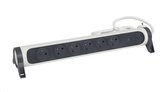LEGRAND Revolution prodlužovací přívod s otočným tělem 6x2P+T přepěťová ochrana, podsvícené VYP/ZAP, 1,5m, bílo-šedá