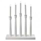 Svícen na 5× žárovičku E10 dřevěný bílý, pětiramenný,35×67cm