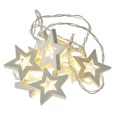 LED vánoční girlanda – hvězdy dřevěné, 2× AA, teplá b., čas.