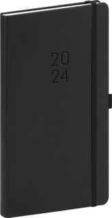 Diář 2024: Černý - plánovací měsíční, kapesní, 9 × 15,5 cm
