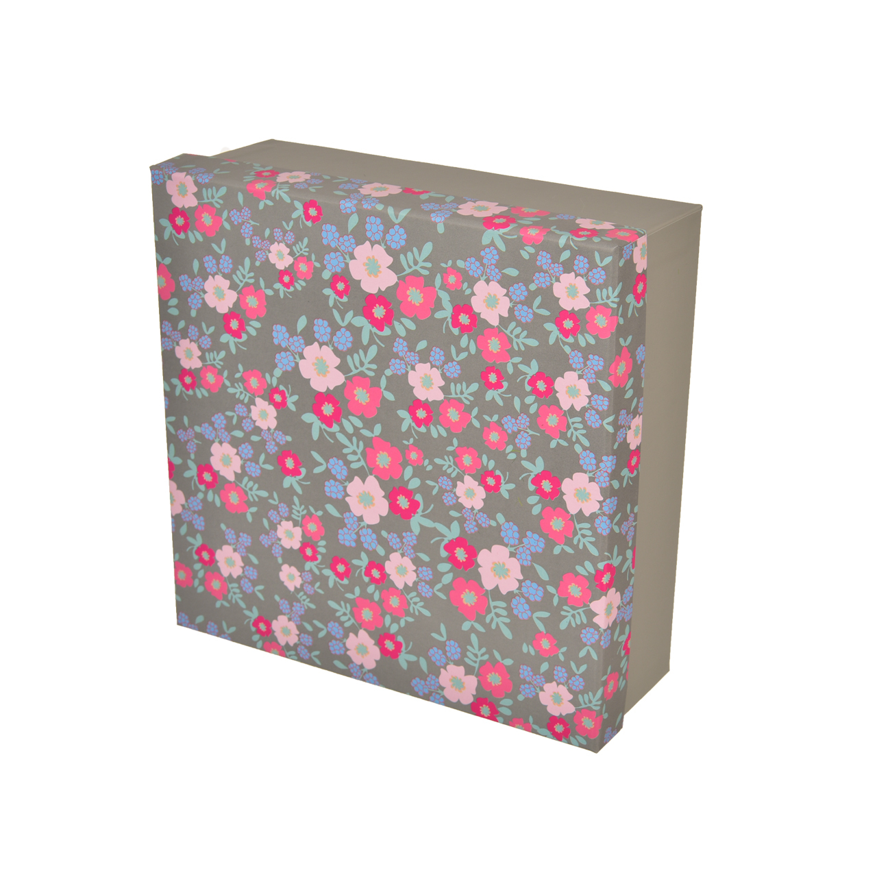 Krabice dárková papír kytička šedá 20x20x8 cm