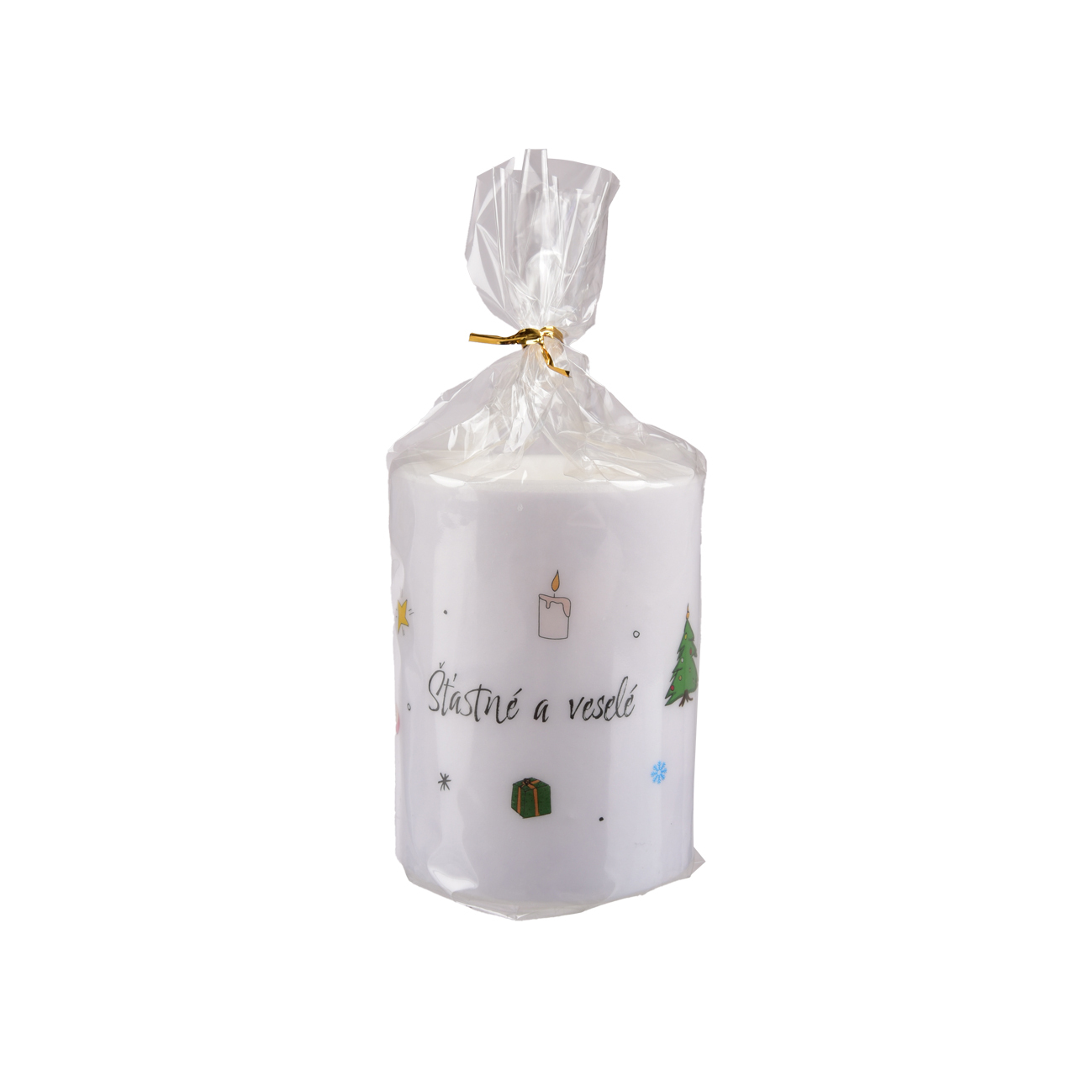 Svíčka s vůní vanilka Šťastné a veselé 8x10 cm