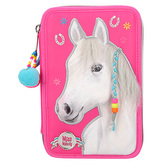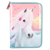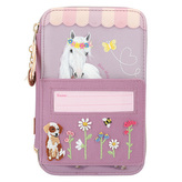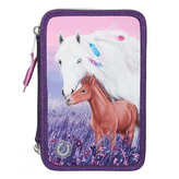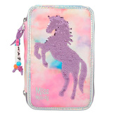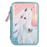 Penál 3 patra s výbavou Miss Melody, Růžový + pastelové barvy, 3 koně v běhu vodou