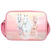 Taška přes rameno Miss Melody, Růžová + pastelové barvy, 3 koně v běhu vodou