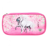 Penál taštička Miss Melody, Miss Melody a Black Angel, růžová, rozkvetlé třešně, s dvojitým zipem