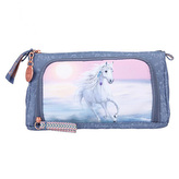 Školní penál taštička Miss Melody, Modro-měděná s přívěskem