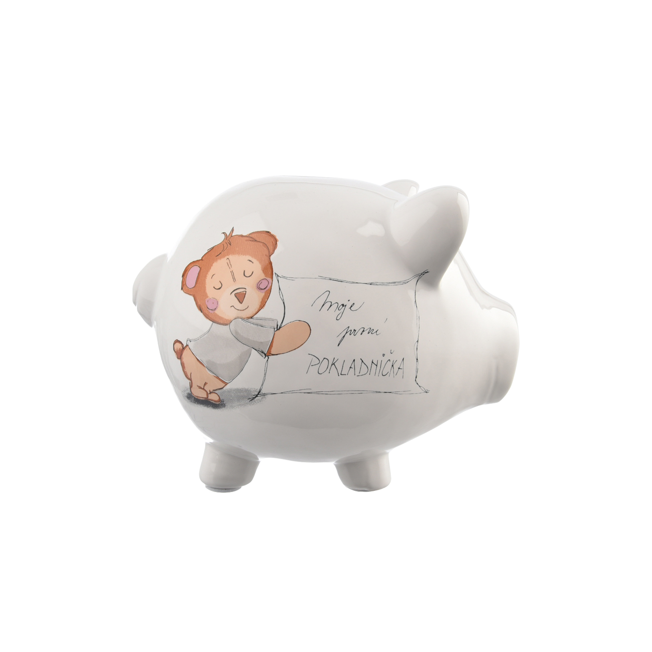 Pokladnička ker. První pokladnička bílá 10x8,5x9 cm