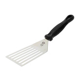 Obracečka de Buyer, 4232.01 OFFSET, děrovaná, nerezová ocel, 12 cm pracovní plochy, lze mýt v myčce na nádobí, ergonomicky tvarovaná rukojeť, protiskluzová úprava, očko pro zavěšení, výroba Francie