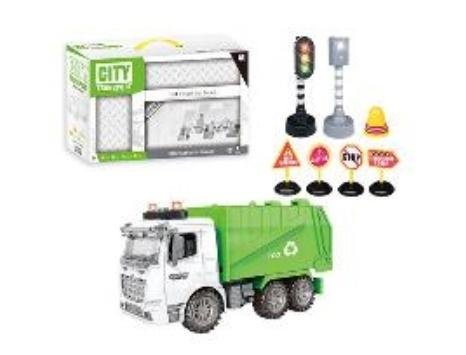 Śmieciarka z fotoradarem, sygnalizacją świetlną i akcesoriami w zestawie. číst celé