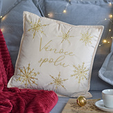 Vyšívaný sametový polštář - Vánoce spolu bez výplně výplň