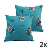 Povlak na polštář, modrá, květiny, sada 2 ks