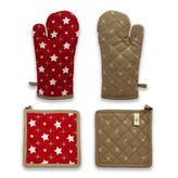 HOME ELEMENTS Chňapka s magnetem a podložka 18*32 + 20*20 cm, Hvězdičky červené
