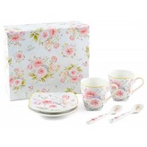 HOME ELEMENTS Sada dvou šálků 250 ml s podšálky a lžičkami, Růže
