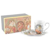 HOME ELEMENTS Hrnek 250 ml, s podšálkem, Klimt, Polibek tmavý