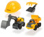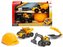 2 pojazdy z budowlane bez napędu - wywrotka i koparka, w zestawie także kask i łopatka z grabiami.3 l+ číst celé
