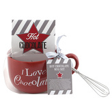 Dárková sada, Čokoláda 19 g, červený keramický hrnek s nápisem 500 ml, metlička