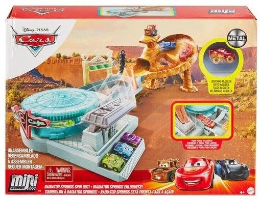 Powrót do korzeni! Zestaw do zabawy Chłodnica Górska Rajdowe wyzwanie ma wiele znanych elementów, uwielbianych przez fanów serii Auta wytwórni DisneyPixar, takich jak kawiarnia u Loli czy kultowe czerwone góry! Poślij auto na rajd po torze: przez tunel w Motelu Sally i przez góry. Tylko uważaj, aby nie spaść w dół! Zestaw zawiera jeden metalowy minisamochodzik Zygzak McQueen z błotnistymi oponami. Dodaj inne mikroauta (sprzedawane oddzielnie), aby cieszyć się zabawą w robienie epickich kraks! Kolory i elementy dekoracyjne mogą się różnić.