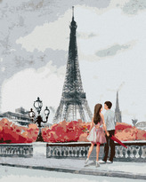 Malování podle čísel - MLADÝ PÁR A EIFFELOVA VĚŽ - 80x100 cm, bez rámu a bez vypnutí plátna