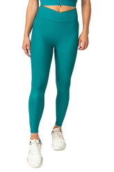 Brainmax dámské legíny s vysokým pasem vykrojeným do V, mořská zelená