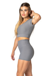 BrainMax žebrované šortky s vysokým pasem, šedá