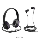 Sluchátka + HF HOCO W24, 3,5mm Jack, barva fialová