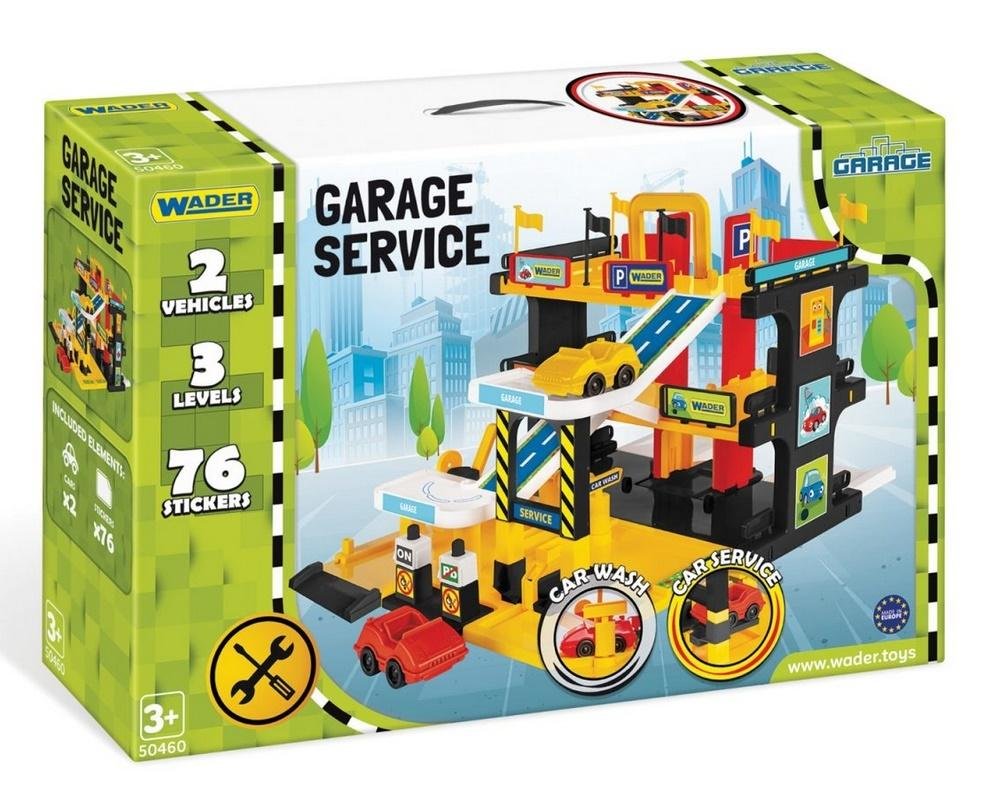 Garaż Serwis z serii Garage to wymarzona zabawka dla każdego fana motoryzacji. Nowoczesny, realistycznie zaprojektowany garaż wyposażony jest w windę transportującą samochody jeden z trzech poziomów, rampę, myjnię samochodową, dystrybutor paliwa, serwis samochodowy, liczne dekoracje i 2 autka. Wielką zaletą jest kolorowa, lekka i prosta w montażu konstrukcja.
