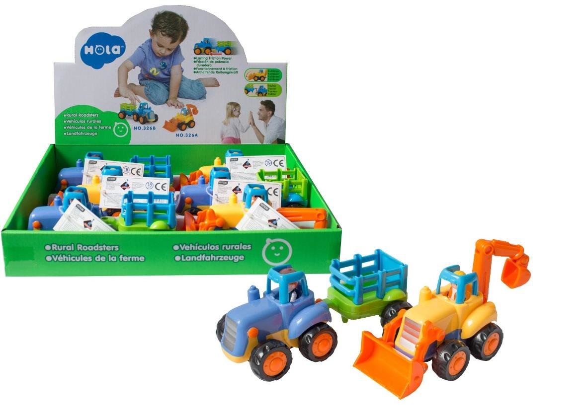 Traktor z przyczepą - 17 cm, koparka - 16 cm.