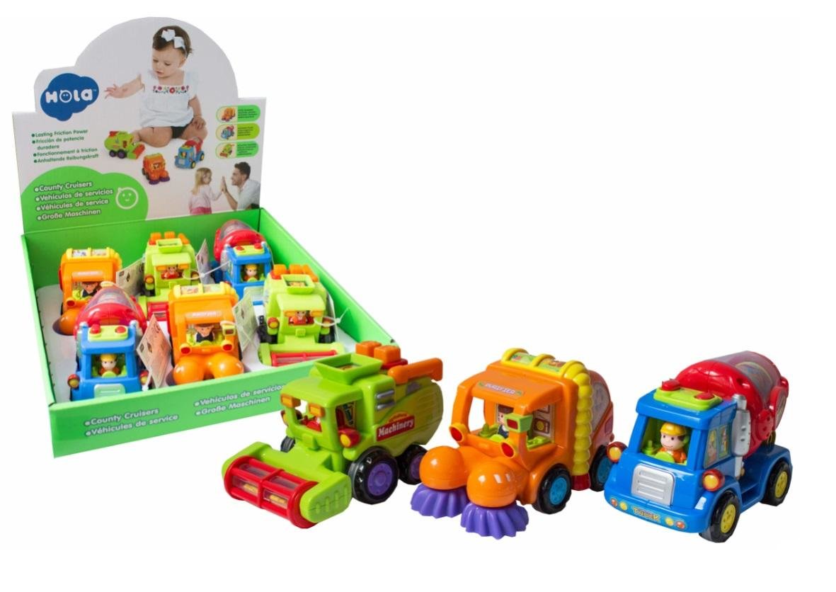 Pojazdy z napędem frykcyjnym, autko 12 cm, 3 wzory - betoniarka, kombajn, śmieciarka. Towar wysyłany losowo. číst celé