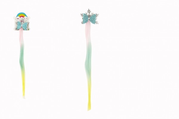 Spona do vlasů vločka s mašlí s duhovým příčeskem kov/plast 7x38cm v sáčku