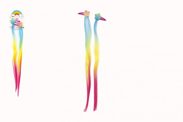 Snad každá holčička si přeje mít barevné dlouhé vlasy. Dopřejte jí to díky barevným duhovým příčeskům, které jsou připevněny na sponce do vlasů. Příčesky jsou dlouhé cca 35cm. Mohou se stát také vhodným doplňkem ke karnevalovému kostýmu. Balení obsahuje 2 ks barevných příčesků. Rozměry balení 10 x 40 x 1 cm. Vhodné pro děti od 3 let.