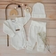 Žebrované zavinovací body, tepláčky a čepička Kazum 3D bavlněná sada, bílé, vel. 62; 62 (2-3m)